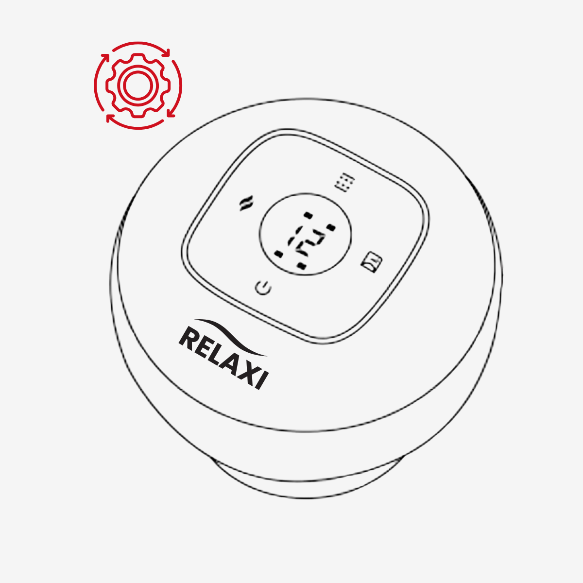 Der RELAXI™ verfügt über eine zeitgesteuerte Entriegelung, um eine Überbeanspruchung zu vermeiden, kombiniert mit einer sofortigen Entriegelung durch einmaliges Drücken, falls der Druck als störend empfunden wird. Jeder RELAXI™ ist ausserdem mit einer eingebauten Heizeinheit ausgestattet, die ohne Flamme Temperaturen von bis zu 50°C erreicht.