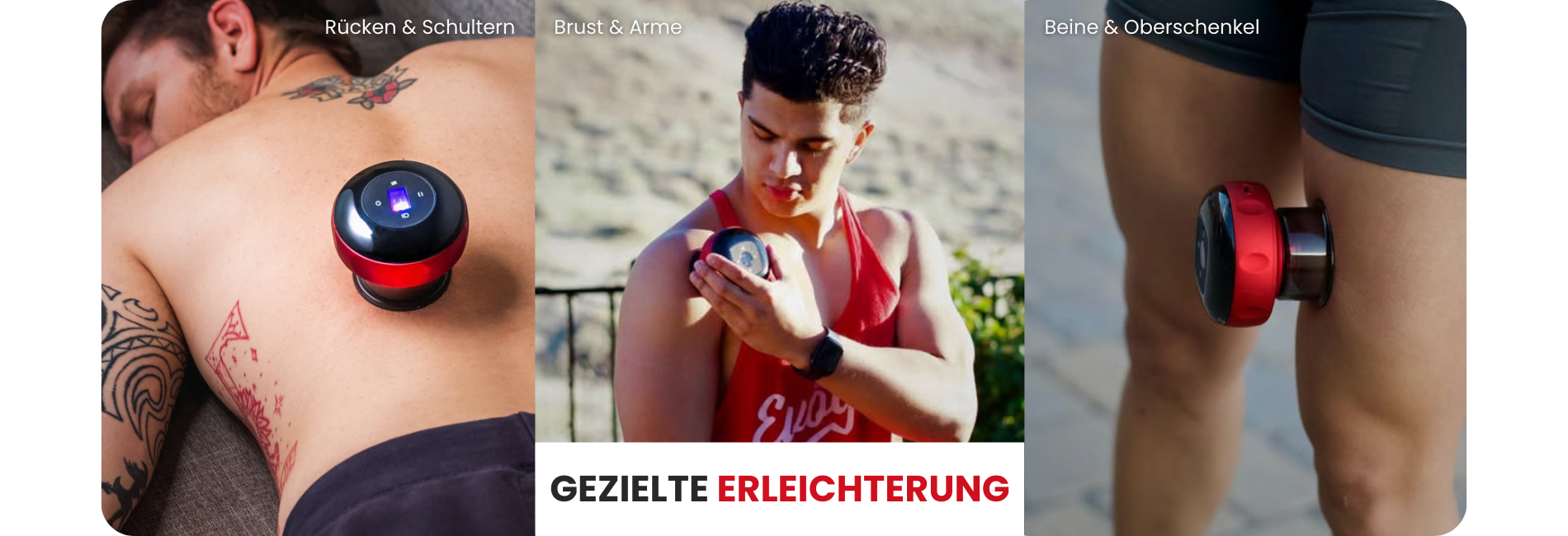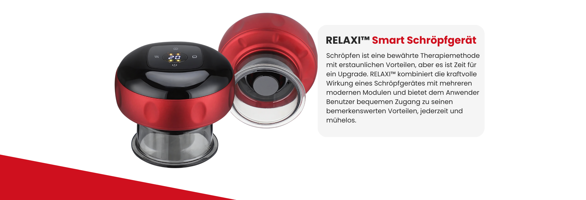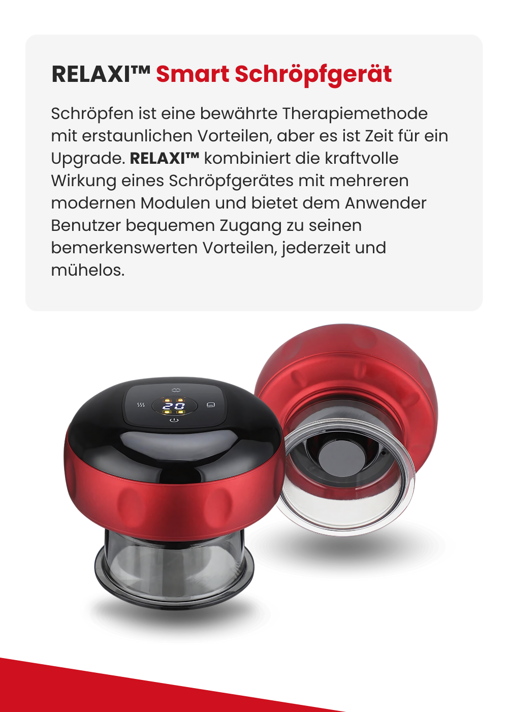 In den letzten 8 Jahren haben Studien gezeigt, dass elektrische Schröpfmassagegerät die Muskelaktivität verringern, Schmerzen lindern, Entzündungen reduzieren und die Genesung beschleunigen. Das RELAXI™ Smart Schröpfmassagegerät hat in Verbrauchertests sogar noch bessere Ergebnisse erzielt.
